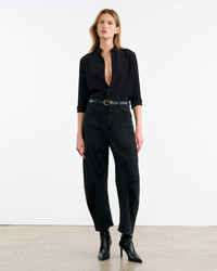 Mid-rise, relaxed fit pant in brushed stretch twill cotton. Uniquely curved silhouette. Seam detail at knees. Gusset at inseam. Zip fly. Hidden hook-and-bar closure. Hidden stay button closure. Top-stitched front and back patch pockets. Belt loops. Made in USA COMPOSITION & CARE 98% COTTON, 2% ELASTANE Machine wash cold Low iron Dry clean recommended