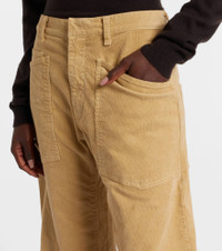 Invest in Nili Lotan's timeless wardrobe staples – where impeccable fit meets sophisticated tailoring. Crafted from a cotton-blend, the Shon pants are shaped into a contemporary barrel-leg silhouette. Product Details - Material: 93% cotton, 6% polyester, 1% elastane - Care instructions: machine wash at 30 degrees - Made in the USA - Designer color name: Sabbia - Item color: beige - Pockets: five pockets - Belt loops - Closure: zip, hook, and button fastening - Item number: P01076277 Size & Fit - True to size - Non-stretchy fabric - Tapered leg - The model seen in the picture is 178cm-5'10" and wearing a size US 4