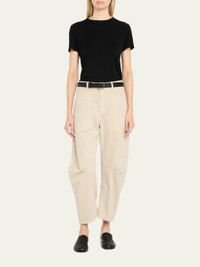 Nili Lotan "Shon" pants High rise Concealed front zip; belt loops Front patch pockets Knee seams Wide legs Full length Cotton/polyurethane Made in the USA