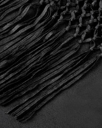 Square scarf in crepe de chine. Custom flat ribbon crochet lacing fringe detail at four sides. Custom fringe artwork. Made in India. COMPOSITION & CARE 100% Silk Dry clean only