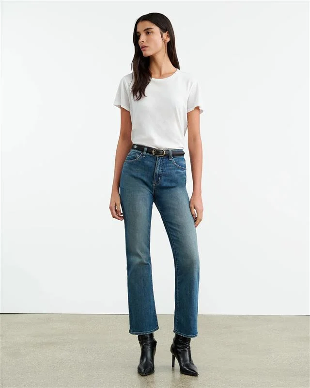 The Boot Cut Jean is the latest addition to our denim line. Denim is the base of Nili's wardrobe and this high waisted addition is perfect paired with a cozy sweater. Made in USA SIZE & FIT Model is 5'10 and wears a size 27. For exact measurements by size, view our size guide. COMPOSITION & CARE 98% Cotton, 2% Polyurethane / Made in America. MACHINE WASH COLD DO NOT BLEACH TUMBLE DRY LOW LOW IRON DO NOT DRY CLEAN