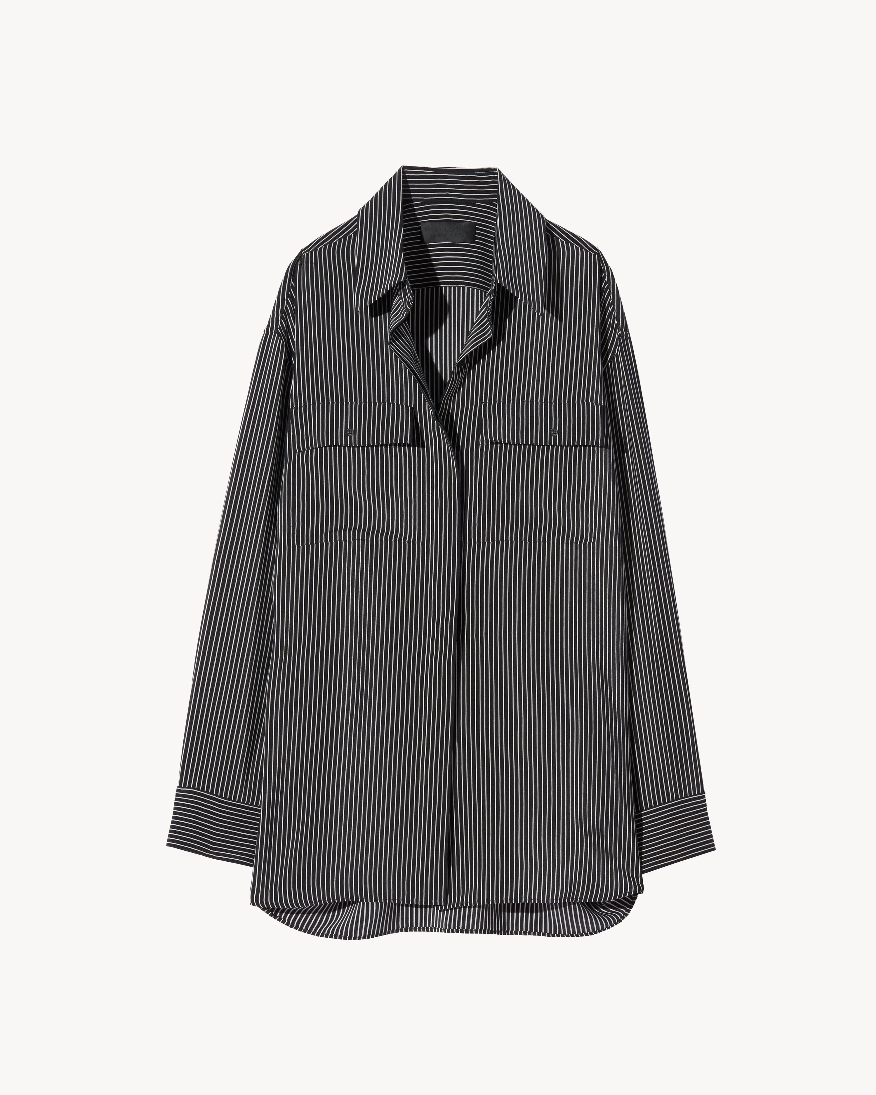 Oversized long-sleeved button-front shirt in fluid silk crepe de chine. Dropped shoulder. Spread collar. Shirred back yoke. Curved shirttail hem. Button flap patch pockets at chest. Tonal buttons. Made in USA SIZE & FIT Model wears size S. For exact measurements by size, view our size guide. COMPOSITION & CARE 100% SILK, MADE IN USA OF IMPORTED FABRIC DRY CLEAN ONLY LOW IRON