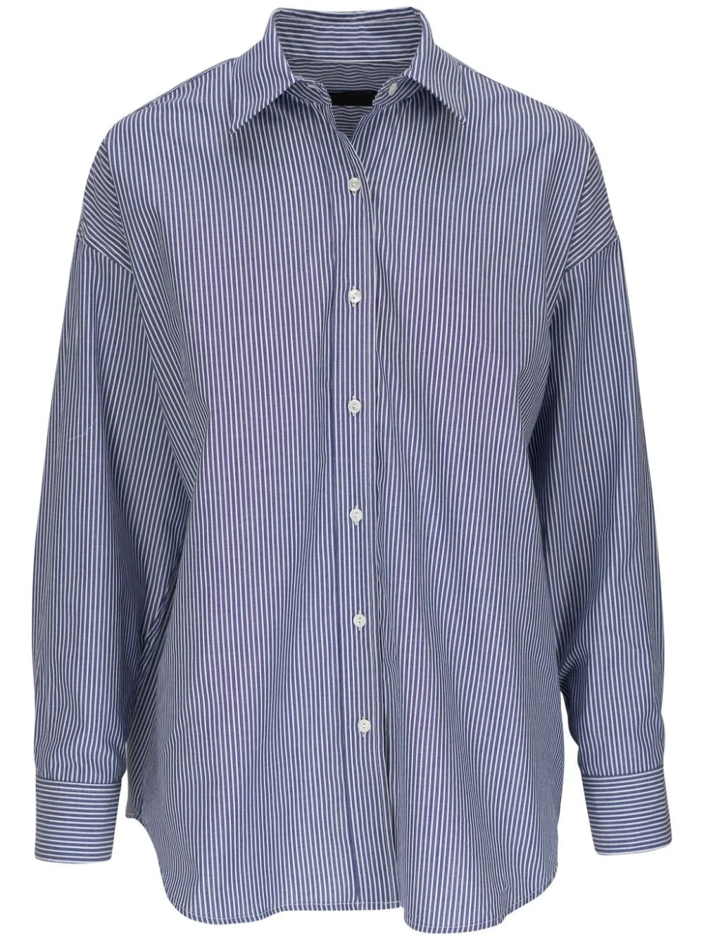 striped cotton shirt Highlights - Blue - Cotton - Vertical stripe pattern - Classic collar - Front button fastening - Long sleeves - Buttoned cuffs - Curved hem Made in United States Composition Cotton 100% Washing instructions Machine Wash