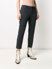Tel Aviv slim-fit trousers Carbon grey stretch cotton Tel Aviv slim-fit trousers from Nili Lotan featuring a mid-rise, a waistband with belt loops, a concealed front fastening, side seam pockets, rear flap pockets and a cropped length. Made in United States Composition Cotton 98%, Spandex/Elastane 2% SIZE & FIT Model measurements Height 5 ft 10 in(1.77 m) Bust/Chest 35.03 in(89 cm) Hips 35.03 in(89 cm) Waist 23.62 in(60 cm) Measurement FRONT RISE 15.15 in(38.5 cm) INSIDE LEG 23.22 in(59 cm) BACK RISE 18.5 in(47 cm) Hem Width 13.38 in(34 cm) HIPS 41.33 in(105 cm) WAIST 33.46 in(85 cm) FittingInformation This piece fits true to size. We recommend you get your regular size Cut for a slim fit Made with a mid-weight stretch fabric Washing instructions Machine Wash