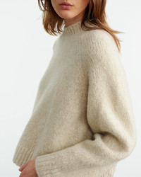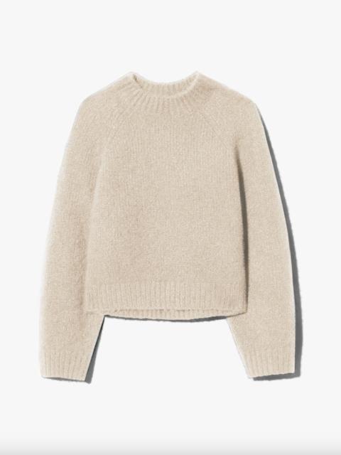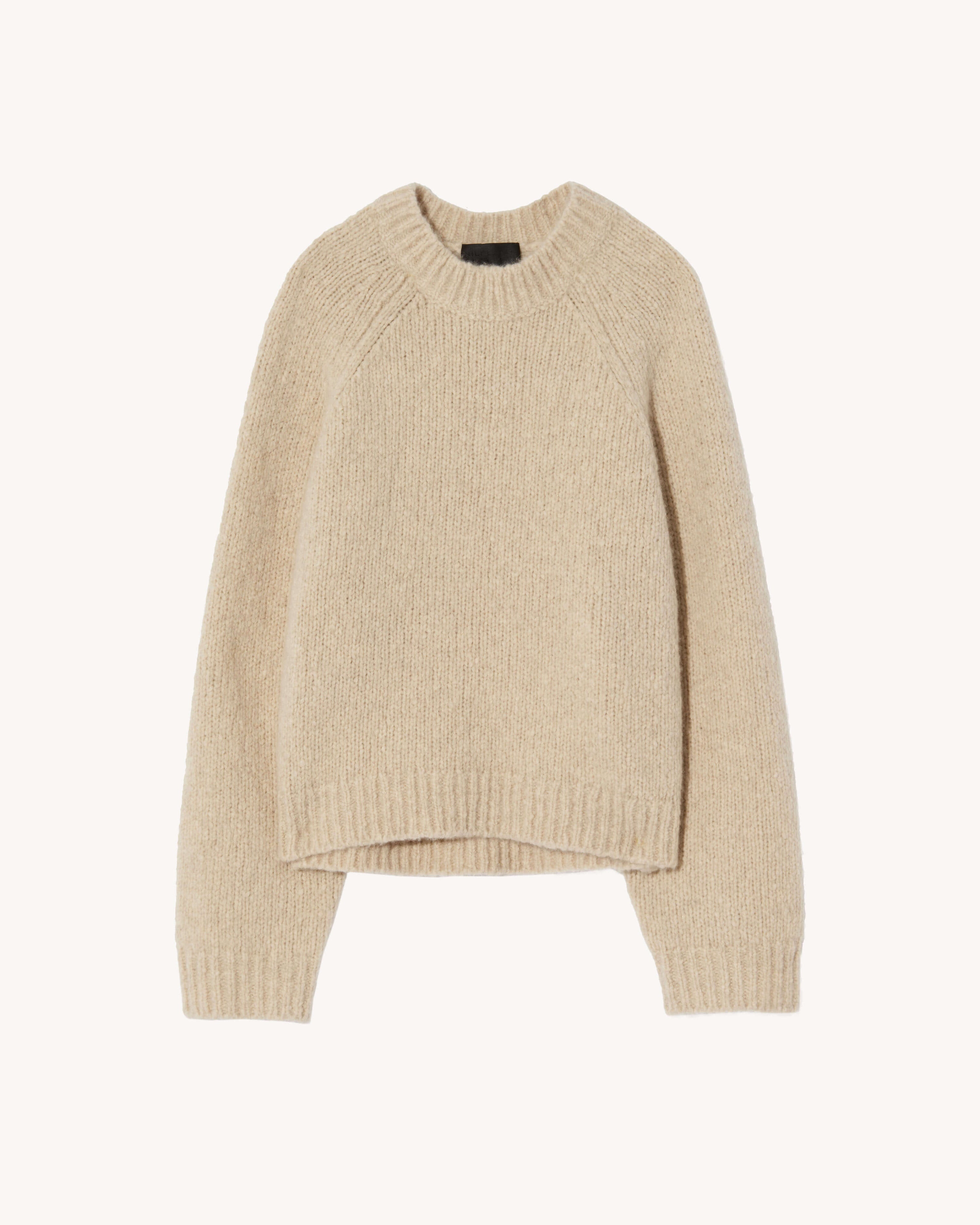 Heavyweight relaxed sweater in cashmere silk blend. High, wide neck trim. Regular length body. Raglan arm hole. Fashioing along arm hole. Rib start at hem and sleeve. Signature center back cable knit detail. COMPOSITION & CARE 90% CASHMERE 10% SILK DRY CLEAN RECOMMENDED