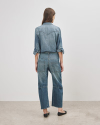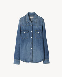 A Nili Lotan essential and a true wardrobe hero. A classic button-down with a hint of western charm, the Travis Shirt is rendered in a soft stretch denim. Our favorite way to style the Travis is with your treasured pair of jeans. Made in USA SIZE & FIT Model is 5'10 and wearing a size S. For exact measurements by size, view our size guide. COMPOSITION & CARE 98% Cotton, 2% Polyurethane / Made in America. MACHINE WASH COLD TUMBLE DRY LOW COOL IRON