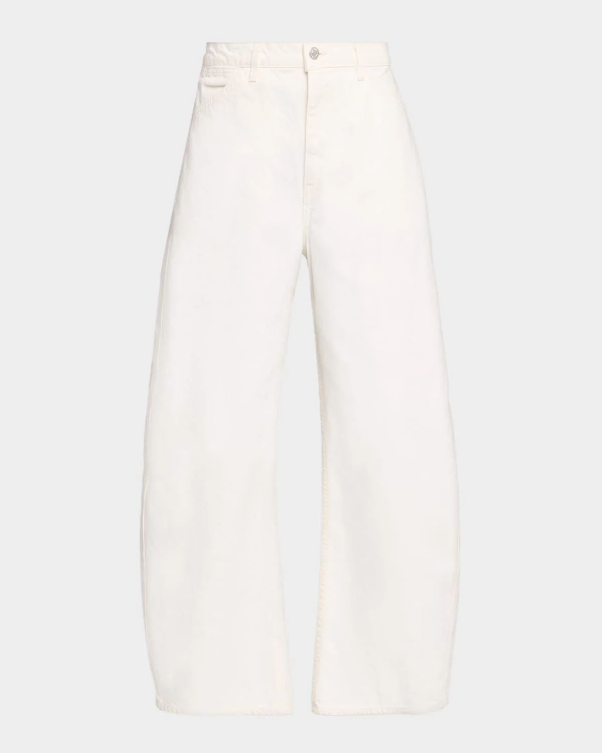 Crafted from white-washed denim, the "Tribeca" jeans & nbsp;from Nili Lotan feature a curved barrel-leg silhouette Mid rise sits high on hip Five-pocket style Curved barrel legs Cropped length Button/zip fly; belt loops Cotton/polyurethane Machine wash cold Made in USA SIZE & FITModel measurements: 5 & apos;10" tallModel is wearing a US size 4/Small