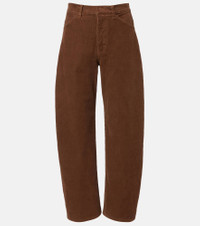Invest in Nili Lotan's timeless wardrobe staples – where impeccable fit meets sophisticated tailoring. The Tribeca barrel-leg pants are made from cotton-blend corduroy and designed with a high-rise waistline. Product Details - Material: 93% cotton, 6% polyester, 1% elastane - Care instructions: machine wash cold - Made in the USA - Designer color name: Caffe - Item color: brown - Closure: zipper fly, button fastening - Pockets: five pockets - Belt loops - Item number: P01094139 Size & Fit - True to size - Slightly stretchy fabric - Wide-leg - The model seen in the picture is 178cm-5'10" and wearing a size US 4