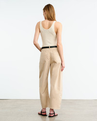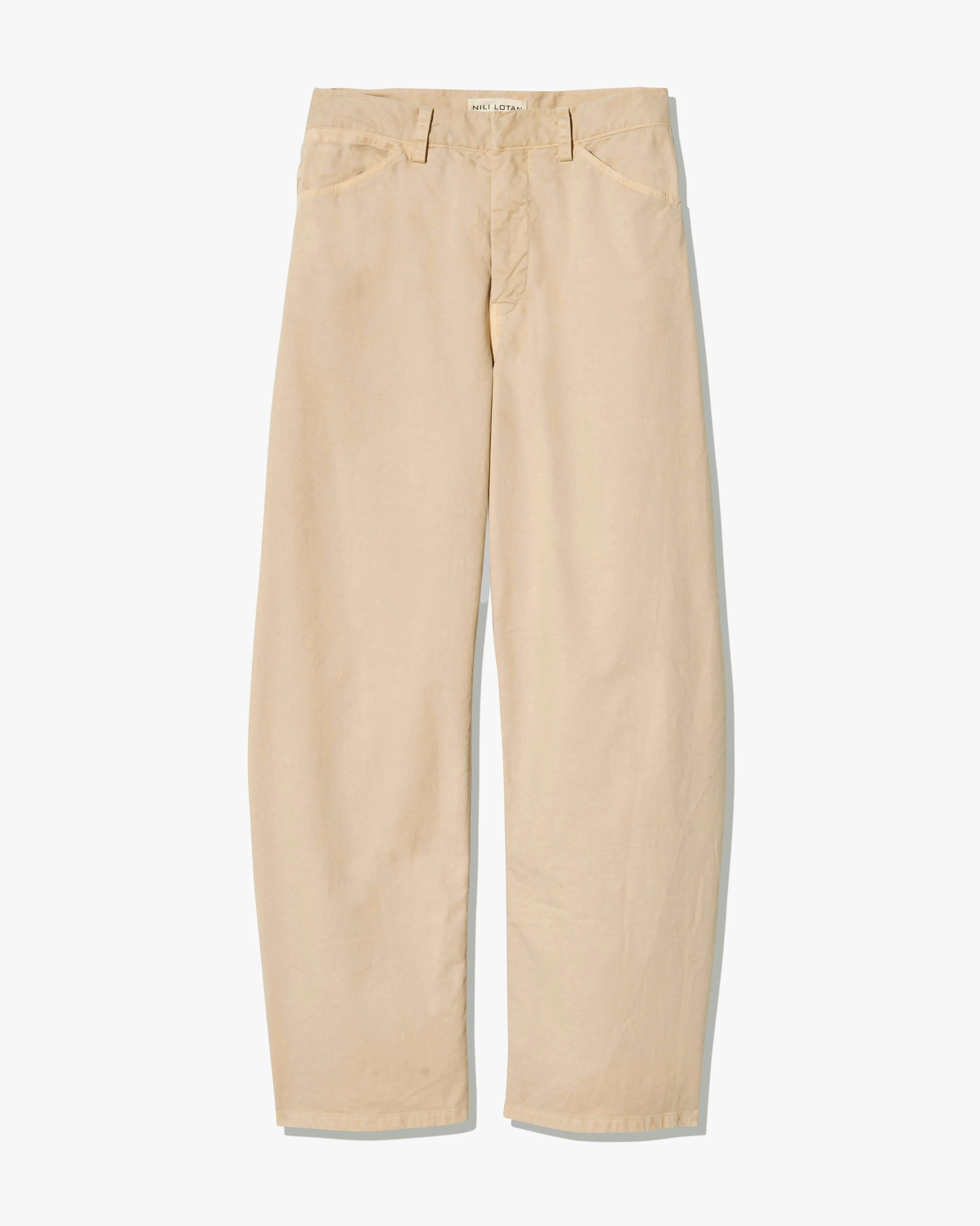 Mid-rise relaxed barrel leg pant in Italian brushed stretch twill cotton. Slant pockets. Back patch pockets. Coin pocket. Hidden hook-and-bar closure. Zip fly. Belt loops. Designed for a 28.2" inseam. Made in USA COMPOSITION & CARE 98% Cotton, 2% Elastane Machine wash cold Do not bleach Tumble dry low Low iron Dry clean recommended