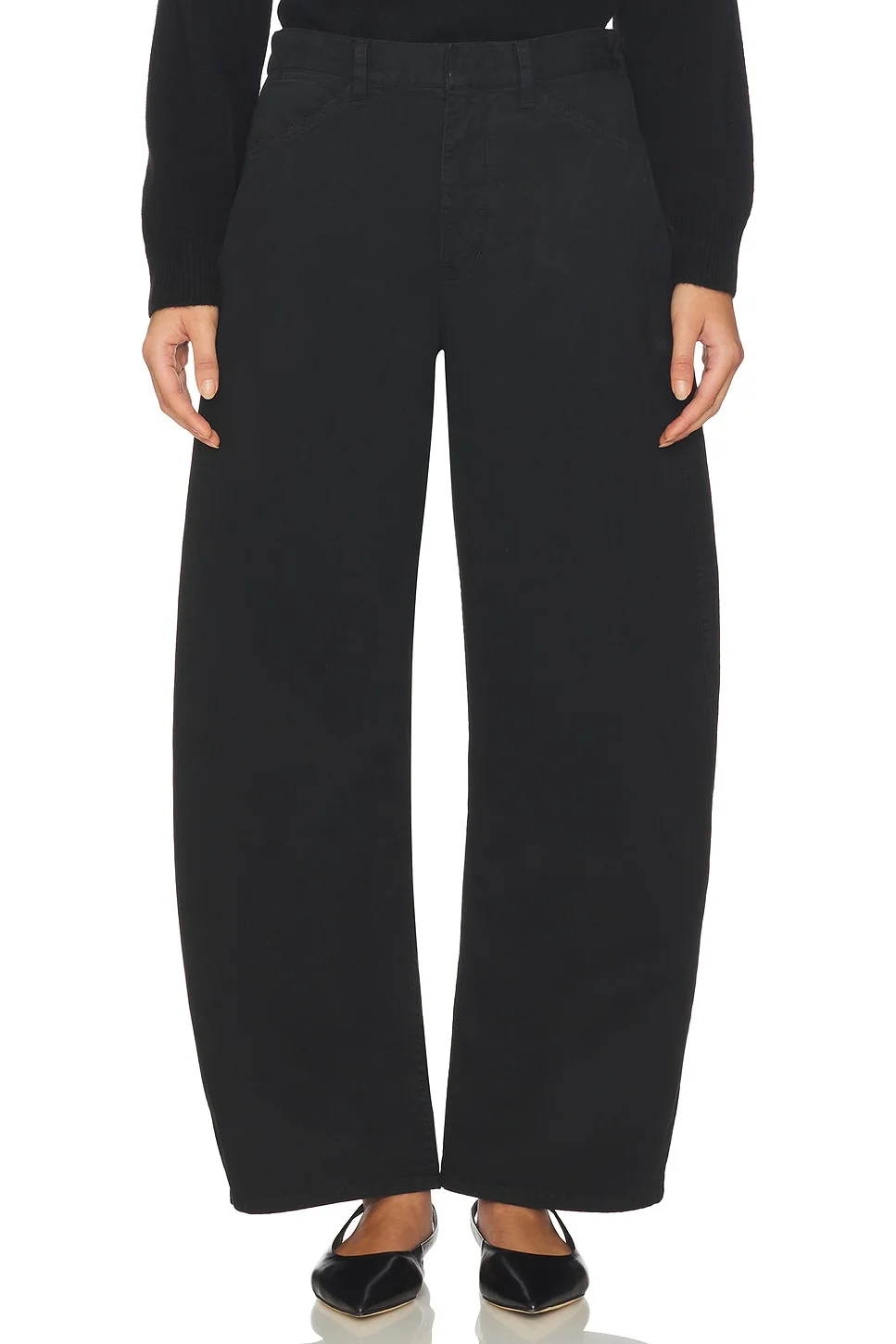 - 98% cotton 2% elastane - Made in USA of imported materials - Machine wash - Zip fly with hook and bar closure.5-pocket design - Midweight canvas fabric.18" at the leg opening - Revolve Style No. NILR-WP148 - Manufacturer Style No. 12905-W12