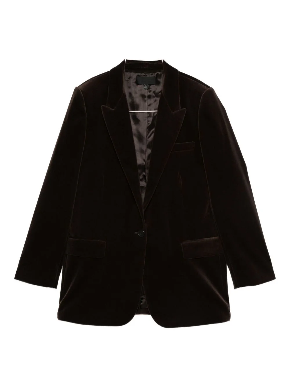 velvet single-breasted blazer Highlights - Dark brown - Velvet texture - Single-breasted - Button closure - Peak lapel - Flap pockets - Long sleeves Imported Composition Velvet 100% SIZE & FIT Model measurements Height 5 ft 11 in(1.8 m) Bust/Chest 31.49 in(80 cm) Hips 36.61 in(93 cm) Waist 24.4 in(62 cm) Washing instructions Read Manufacturer Guidelines