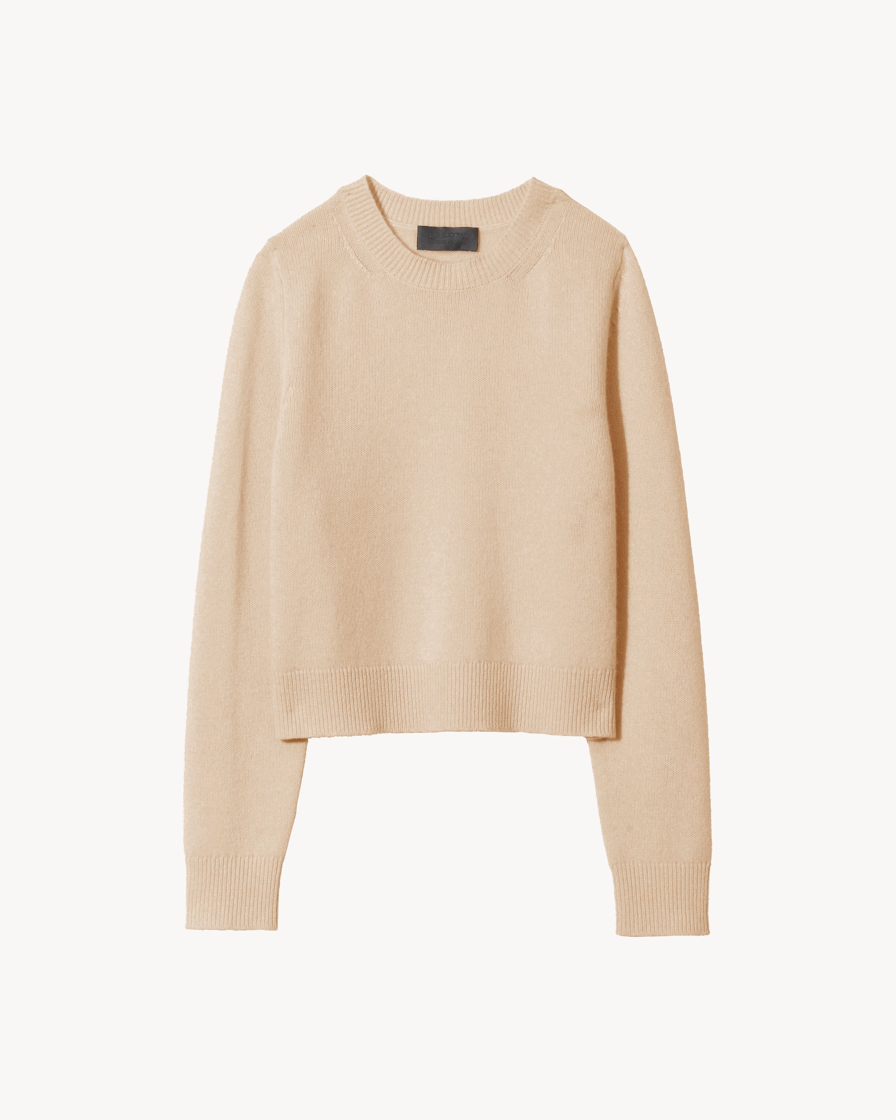 Light to medium weight gauge slim sweater. Fully fashioned along neck, sleeve and arm hole. Center back signature cableknit detail.