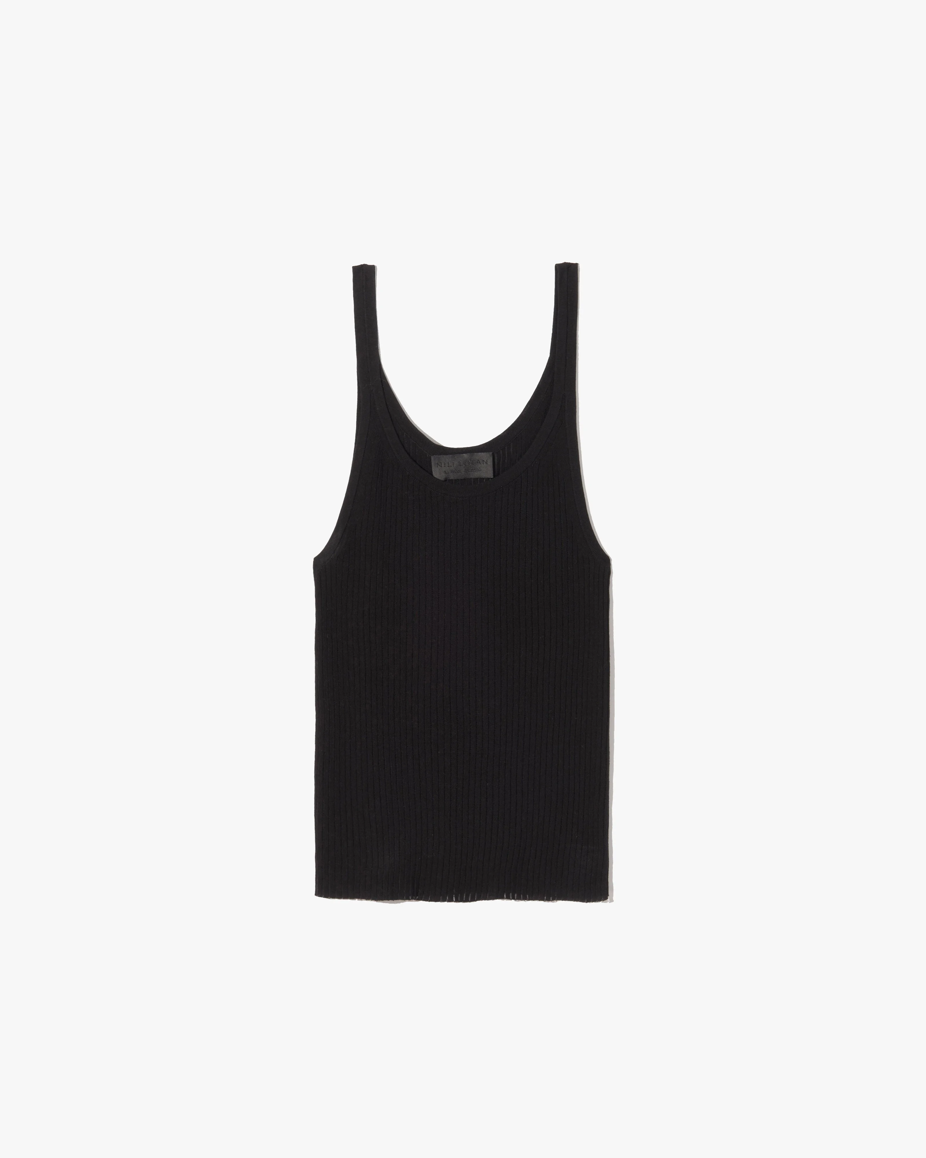 Light weight compact rib knit tank in Italian cotton. Skinny strap. Lower neckline. Self start hem. COMPOSITION & CARE 100% Cotton Dry clean recommended