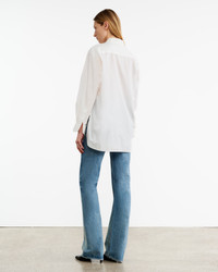 An elevated classic and a staple in Nili's personal wardrobe, the Yorke Shirt is rendered in a crisp poplin. A modern and clean silhouette without topstitching, and an oversized fit that is slightly longer in the back. Made in USA SIZE & FIT Model is 5'11 and wears a size S. For exact measurements by size, view our size guide. COMPOSITION & CARE 100% COTTON, MADE IN USA DO NOT TUMBLE DRY MACHINE WASH COLD DO NOT BLEACH LOW IRON DO NOT DRY CLEAN