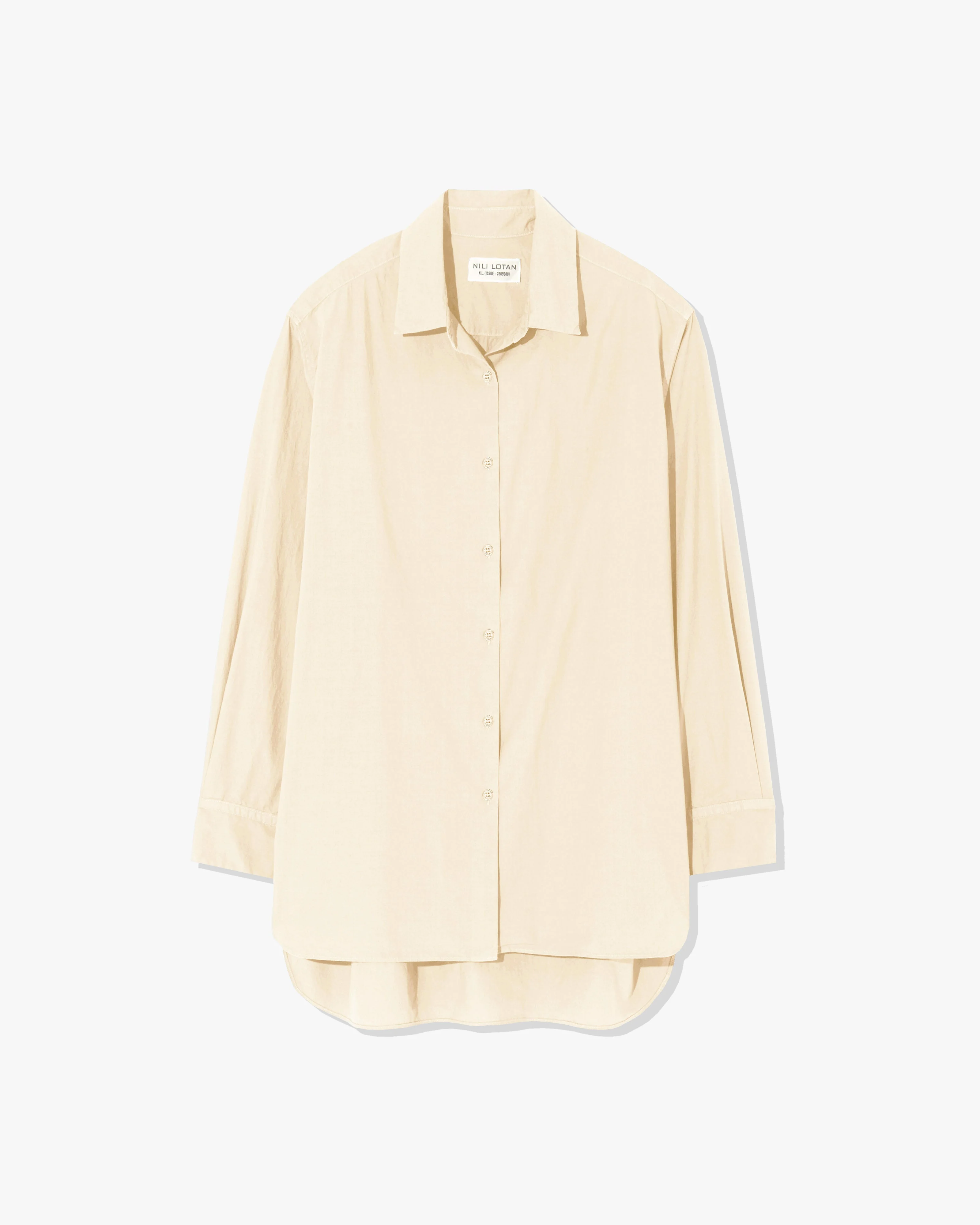 Oversized button down shirt in cotton. Center front placket. Cuff placket. Exaggerated shirttail hem. - Made in USA - 100% Cotton - Do not tumble dry - Machine wash cold - Do not bleach - Low iron - Do not dry clean