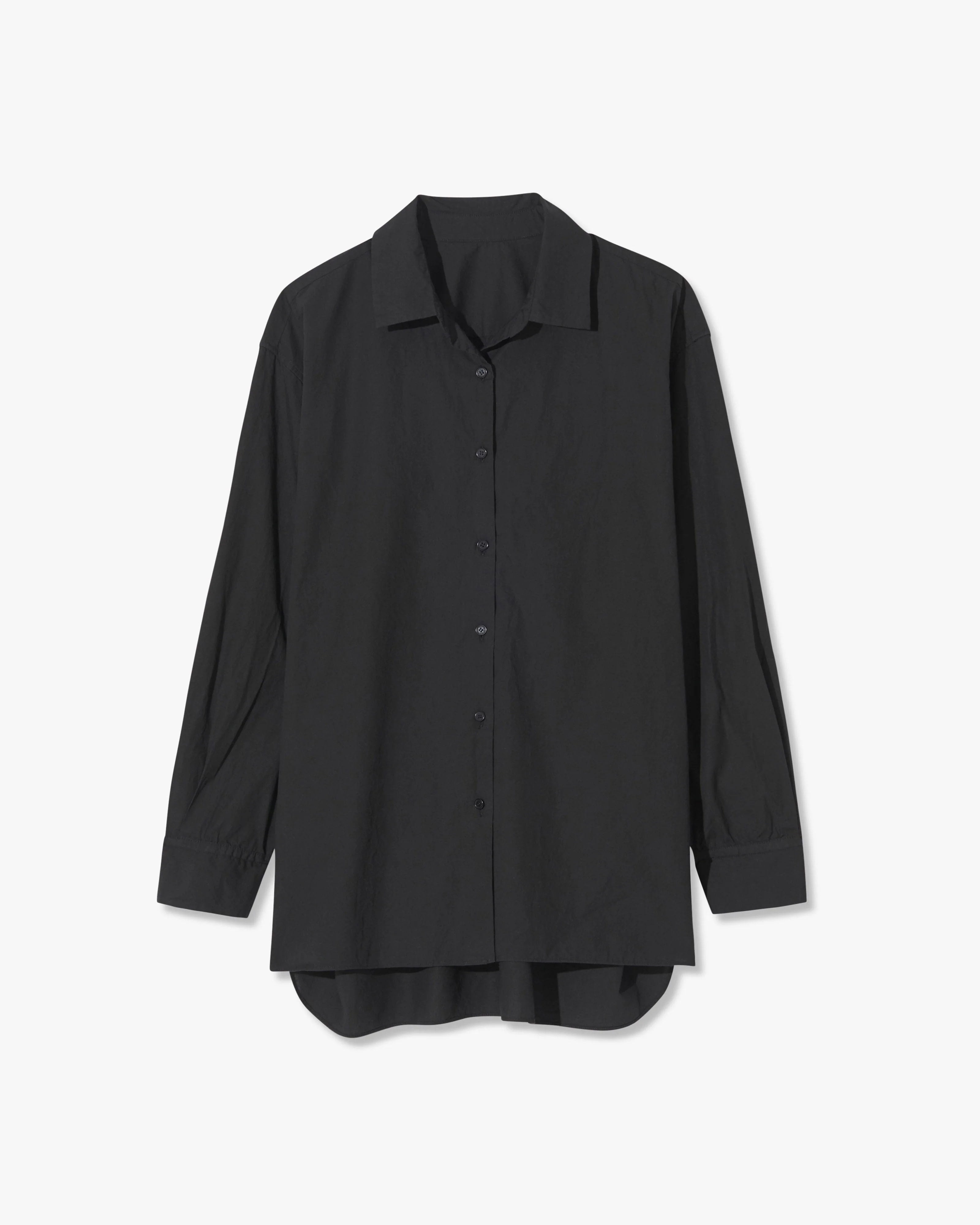 Oversized button down shirt in cotton. Center front placket. Cuff placket. Exaggerated shirttail hem. Made in USA COMPOSITION & CARE 100% Cotton Do not tumble dry Machine wash cold Do not bleach Low iron Do not dry clean