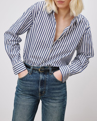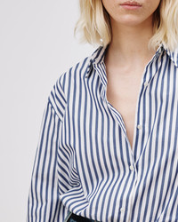 An elevated classic and a staple in Nili's personal wardrobe, the Yorke Shirt is rendered in a crisp poplin. A modern and clean silhouette without topstitching, and an oversized fit that is slightly longer in the back. Made in USA COMPOSITION & CARE 100% COTTON, MADE IN USA OF IMPORTED FABRIC MACHINE WASH COLD DO NOT BLEACH DO NOT TUMBLE DRY MEDIUM IRON
