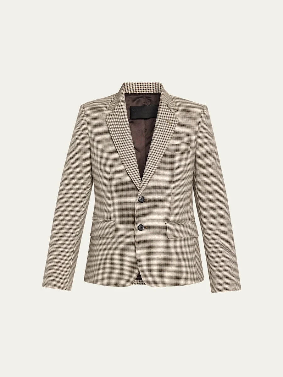 Ysee Houndstooth Wool Single-Breasted Blazer Jacket
