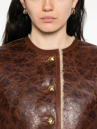 Zanie button leather jacket Highlights - Brown - Lambskin - Gold-tone buttons - Flap pockets - Crew neck Imported Composition Outer: Lamb Skin 100% Lining: Lamb Fur 100% SIZE & FIT Model measurements Height 5 ft 9 in(1.75 m) Bust/Chest 32.67 in(83 cm) Hips 36.22 in(92 cm) Waist 24.8 in(63 cm) Washing instructions Specialist Cleaning