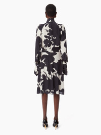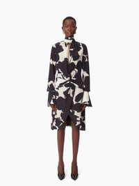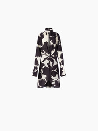 A new addition to the Fall-Winter 2024 collection, this dress is crafted from floral print silk crepe de chine with a light, fluid drape and an elegant cut-out on the neckline. It can be worn with ease for any occasion and adds a sophisticated touch to your look. This style fits true to size. Take your regular size. COMPOSITION & DETAILS - 100% silk. - Fitted cut. - Midi length. - Cut-out neckline. - Long sleeves. - Flared cuffs. - Drape tied at front. - Zipped back. - High collar fastened with 3 buttons. - Model is 180 cm and wears a size 36 (FR). - Ref : 24ACRO018SE1399I1120
