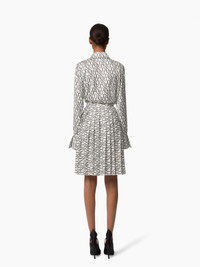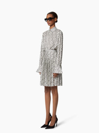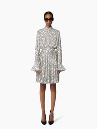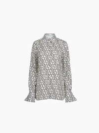 This cream long-sleeve shirt features a minimalist design elevated by bell cuffs, adding a couture-inspired finish. Showcasing the exclusive black graphic Nina Ricci print, it stands as a signature piece of the Autumn-Winter 2025 collection—reimagined each season by Harris Reed. COMPOSITION & DETAILS - 100% polyester. - Fitted cut. - Pointed French collar. - Bell cuffs. - Model is 180 cm (5ft 11in) tall and wears a size 36 (FR). - Ref: 25ACTO007PL0485I1215