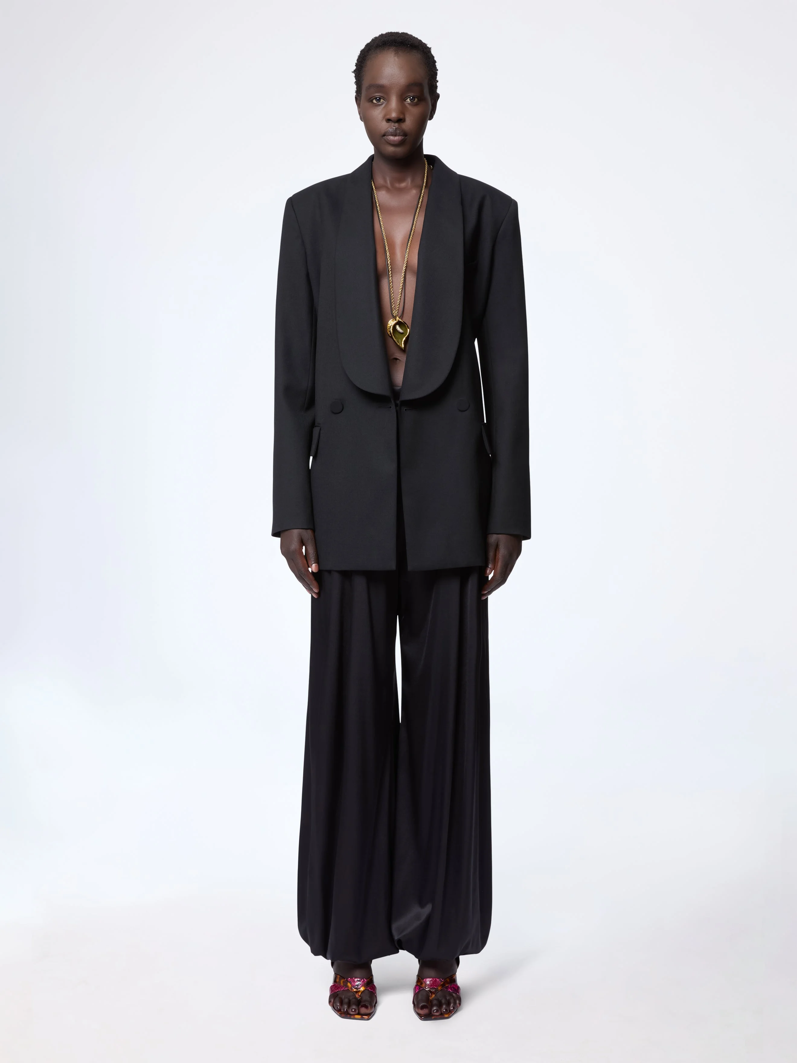 These harem trousers in black silk satin feature a sculptural volume with a soft, gathered drape. Cut high at the waist and widening through the leg, they capture the fluidity and depth of the Spring-Summer 2026 collection. COMPOSITION & DETAILS - 94% silk 6% elastane. - Model is 180 cm/ 5ft 11in and wears size 38 (FR). - Ref: 26PCPA011SE1415U9000