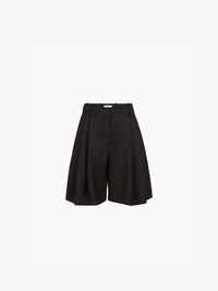 These wide pleated shorts, crafted from structured black wool gabardine, make a bold comeback in the Fall-Winter 2025 collection. With their high-rise waist and sharp tailoring, they reinterpret classic suiting codes through a confidently modern lens—an essential piece in the Nina Ricci wardrobe. COMPOSITION & DETAILS - 100% virgin wool. - High waist. - Wide-leg fit. - Belt loops. - Concealed closure. - 2 slanted pockets. - Model is 178 cm/ 5ft 10in and wears a size 36 (FR). - Ref: 25ACPA010WV0324U9000