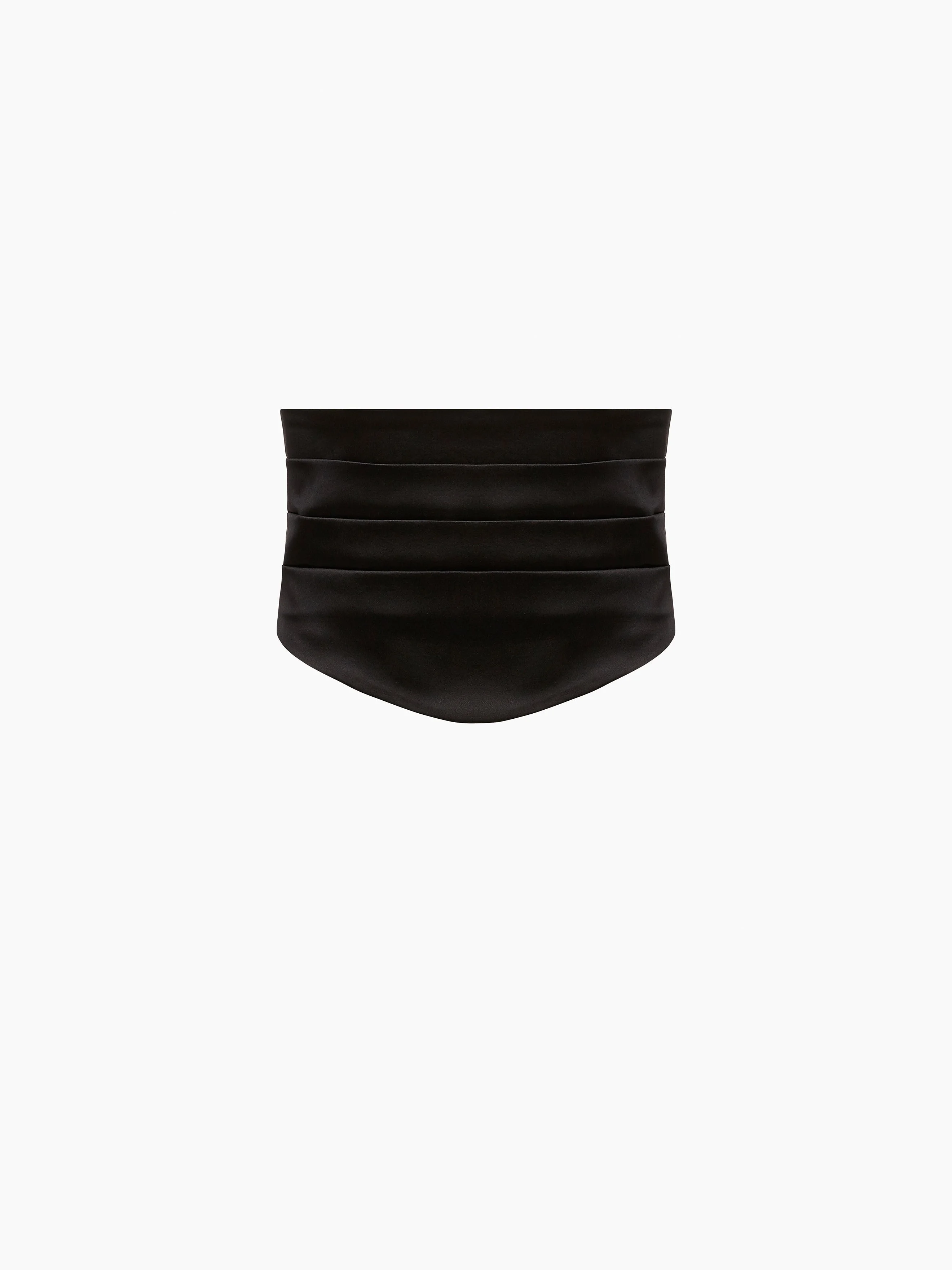 Add a sophisticated touch to your formal looks with this black satin tuxedo belt. Designed with flat pleats and an adjustable closure, it perfectly completes a tailored outfit with modern elegance. COMPOSITION & DETAILS - 52% viscose, 37% silk, 11% elastane. - Adjustable closure. - Nina Ricci logo engraved on the ring. - Ref: 25ACAC002VI0530U9000
