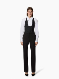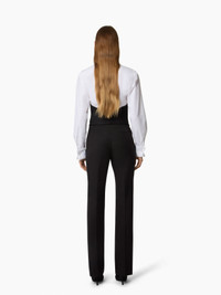 A key element of the Nina Ricci silhouette, the tailored look is reimagined each season by Harris Reed with a modern twist. Reintroduced in the Fall-Winter 2025 collection, these black wool gabardine trousers stand out with their straight, structured fit. Paired with the matching jacket from the collection, they create a timelessly elegant ensemble true to the spirit of the Maison. COMPOSITION & DETAILS - 100% virgin wool. - Straight-leg fit. - Belt loops. - Concealed closure. - 2 slanted pockets. - Model is 178 cm/ 5ft 10in and wears a size 36 (FR). - Ref: 25ACPA004WV0324U9000