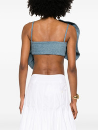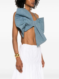 giant-bow top Highlights - Cerulean blue - Side hook and eye fastening - Spaghetti straps - Cropped - Pleat detailing Imported Composition Cotton 100% SIZE & FIT Model measurements Height 5 ft 11 in(1.8 m) Bust/Chest 32.67 in(83 cm) Hips 35.82 in(91 cm) Waist 25.98 in(66 cm) FittingInformation Designed for a close fit throughout Cropped in length Sturdy and hard-wearing, this denim piece offers no stretch Washing instructions Machine Wash