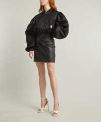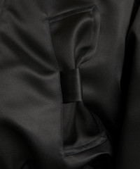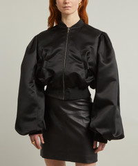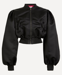 DETAILS Satin Bomber Jacket Black colourway Bow adorned slip pockets Silver hardware Balloon sleeves Zip front Cropped length From the SS24 collection SIZE & FIT Model is 176cm/5'9.5"; Chest: 79cm; Waist: 60cm; Hip: 89cm and wears a size 8 COMPOSITION & CARE 100% Polyester Lining - 86% Polyester; 12% Polyamide; 2% Elastane Dry clean