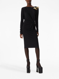 bow-detailing long-sleeve dress Highlights - Black - Stretch-design - Wrap design - Bow detailing - Round neck - Long sleeves - Straight hem - Mid-length Made in France Composition Viscose Crepe 94%, Elastane 6%