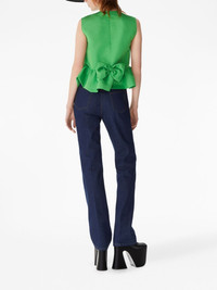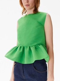 bow-detailing sleeveless top Highlights - Emerald green - Bow detailing - Round neck - Rear zip fastening - Sleeveless - Peplum hem Imported Composition Polyester 100% SIZE & FIT Measurement CHEST 34.64 in(88 cm) HIPS 40.94 in(104 cm) LENGTH 22.04 in(56 cm)
