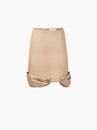 For the Fall-Winter 2024 collection, Harris Reed reinterpreted the midi skirt. Crafted in beige cotton, pleating reveals a bow cleverly integrated into the skirt hem, revisiting the Maison's codes. If you are between 2 sizes, take 1 size up. COMPOSITION & DETAILS - 100% water-repellent cotton. - Fitted cut. - Midi length. - High waist. - Bow peplum. - Zipper closure. - Model is 181 cm and wears a size 36 (FR). - Ref : 24ACJU014CO1076U7350