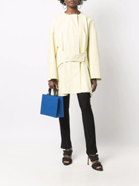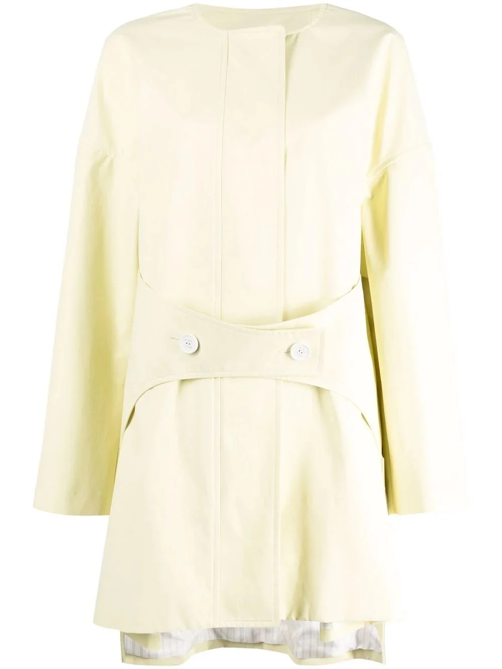 button-fastening single-breasted coat butter yellow cotton blend round neck concealed front fastening drop shoulder long sleeves button-fastening straps side patch pockets Made in France Composition Outer: Cotton 100% Lining: Acetate 56%, Viscose 44% SIZE & FIT Model measurements Height 5 ft 10 in(1.77 m) Bust/Chest 34.64 in(88 cm) Hips 35.43 in(90 cm) Waist 24.8 in(63 cm) Washing instructions Dry Clean Only