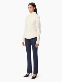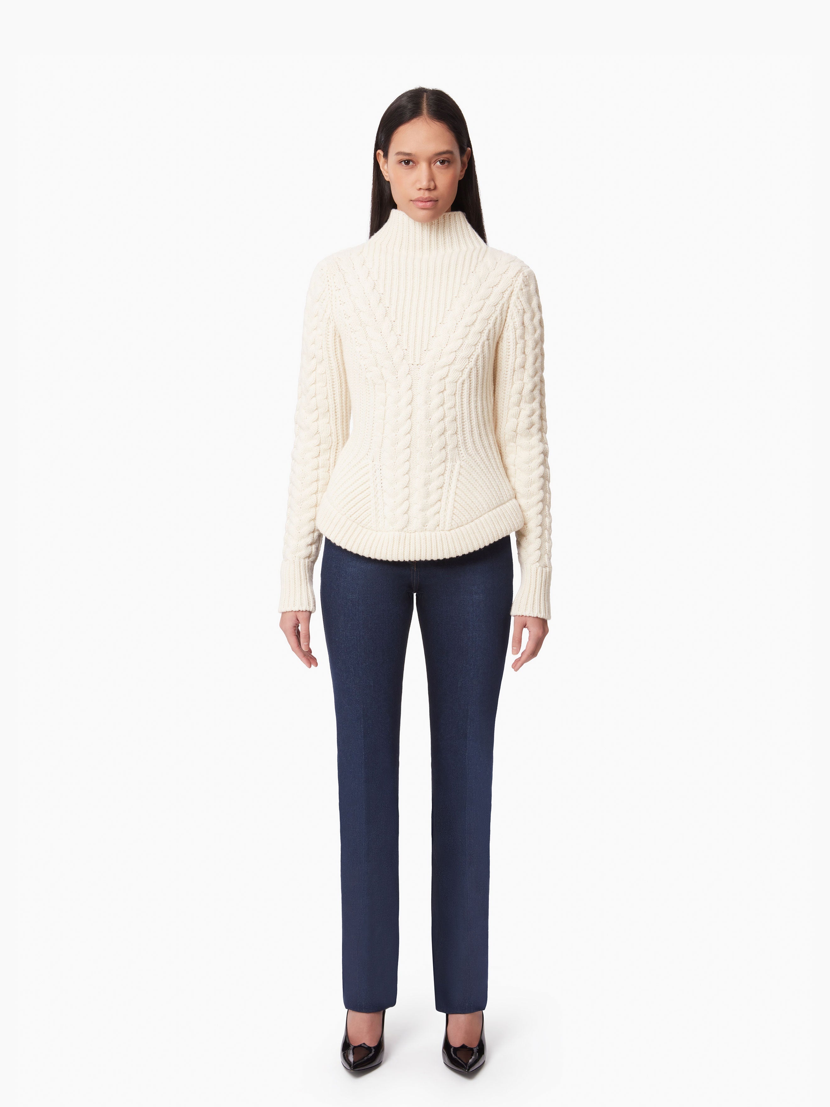Manufactured in virgin wool, this turtleneck features a twisted knit and English ribbing, embodying the essence of the Nina Ricci woman. This style fits true to size. Take your regular size. COMPOSITION & DETAILS - 100% virgin wool. - Fitted cut. - Turtleneck. - Model is 178 cm and wears a size S (FR). - Ref : 24AMPU005ML0556U2801