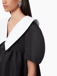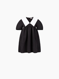 Emblematic of the Maison Nina Ricci, the babydoll dress symbolizes the femininity imagined by Harris Reed. Made of taffeta fabric, it features a contrasting collar for a unique, assertive look. Oversize fit. Take your regular size. COMPOSITION & DETAILS - 100% recycled polyester. - Wide fit. - Mini length. - Contrast V-neck. - Wide point collar. - Short sleeves. - Low armholes - Back zip fastening. - Model is 178 cm and wears a size 36 (FR). - Ref : 24ACRO026PL0440U9000