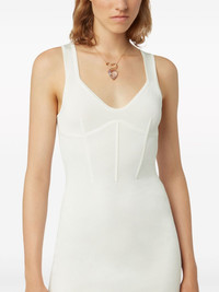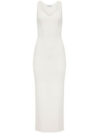 corset-style maxi dress Highlights - White - Stretch-design - Scoop neck - Sleeveless - Boned bodice - Rear slit - Straight hem - Calf-length Imported Composition Viscose 59%, Cotton 16%, Polyester 15%, Polyamide 8%, Elastane 2%