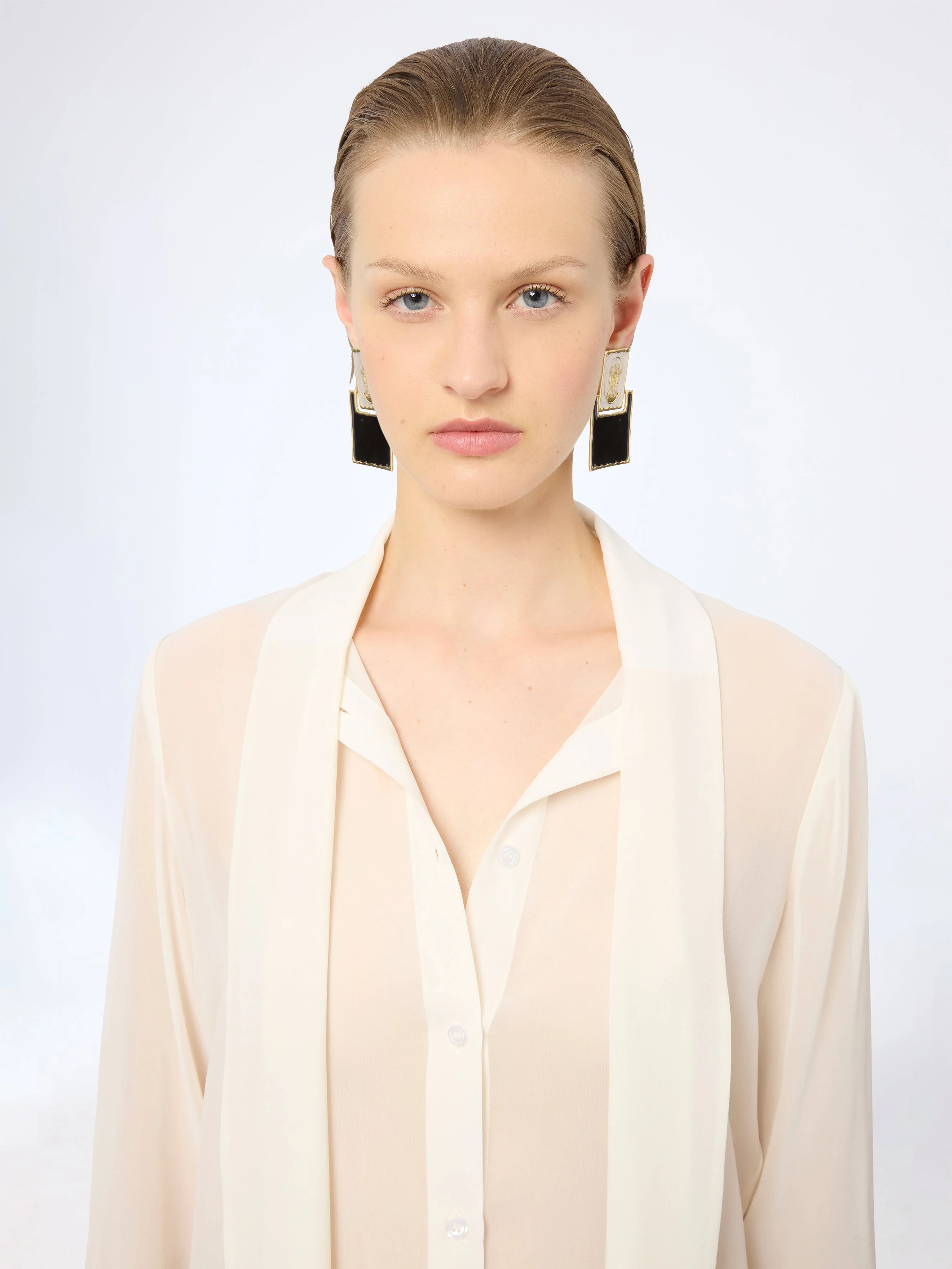 The “Cream Three Graces” earrings feature a sculptural gold-tone frame encasing a cream and black lacquered surface. The earrings fasten with a post back. COMPOSITION & DETAILS - 100% brass. - Post fastening. - Ref: 26PBB0208MET027U1230
