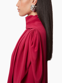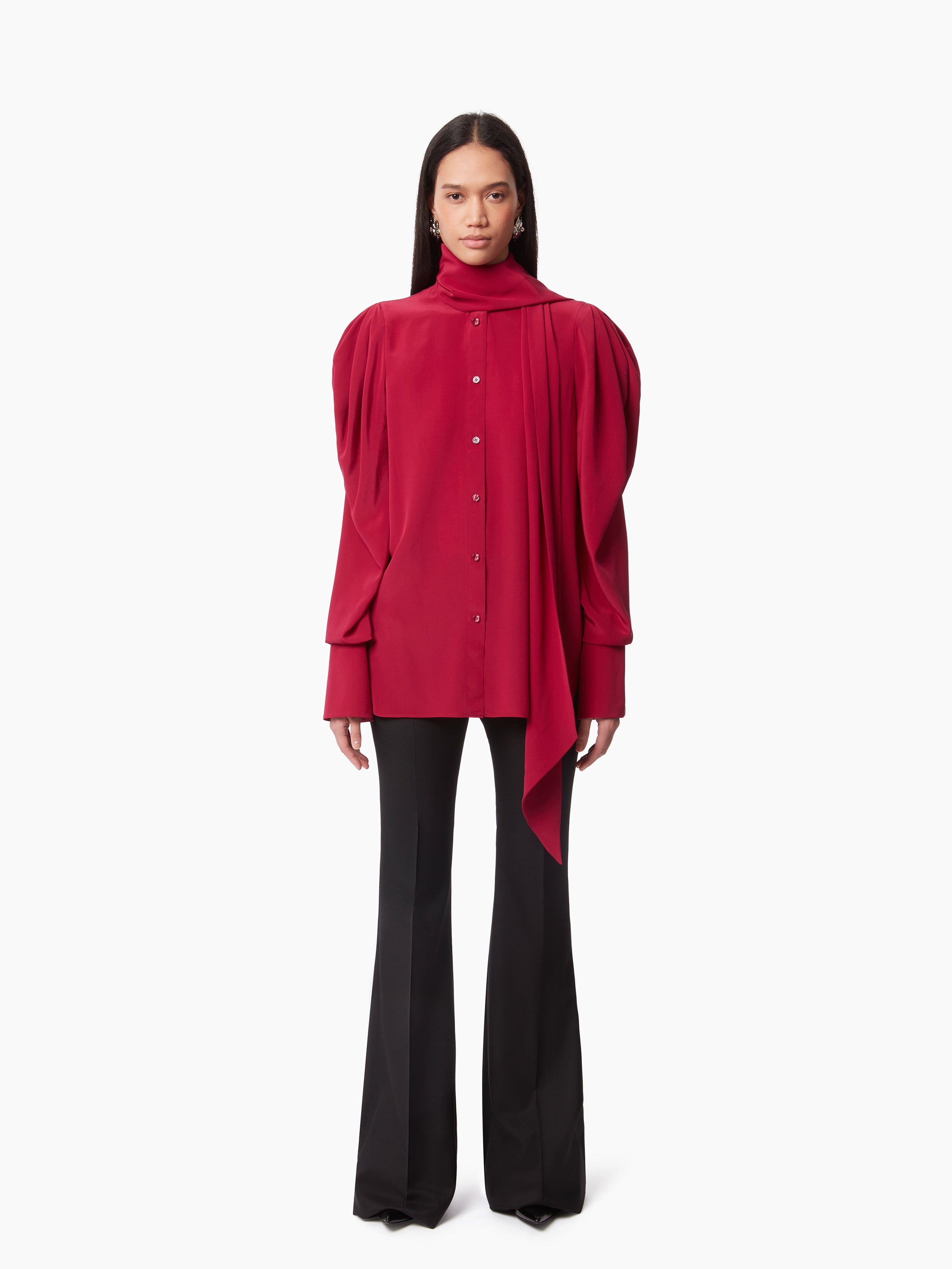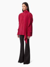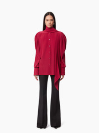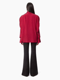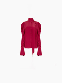 Emblematic of the Nina Ricci silhouette, the pussy bow, or lavalliere in French, symbolizes the Maison's heritage, reinterpreted each season by our artistic director, Harris Reed. Integrated with a silk crepe de chine shirt, it's a perfect match for any dressy or casual look. The pleating on the ruched sleeves plays with proportions for a unique look. This style fits true to size. Take your regular size. COMPOSITION & DETAILS - 100% silk. - Straight cut. - Lavalliere neck. - Long sleeves. - Bell cuffs. - Button closure - Model is 180 cm and wears a size 36 (FR). - Ref : 24ACTO003SE1383U2799