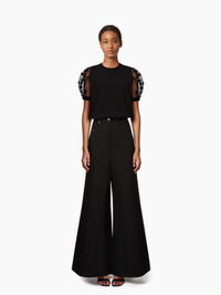 These jeans are made of premium quality organic cotton, and come with a flared cut. This style fits true to size. Take your regular size. COMPOSITION & DETAILS - 100% organic cotton. - Flare fit. - High waist. - Zip and button closure. - Gold-tone textured button. - 5 traditional denim pockets. - Model is XXX cm and wears a size XX (FR). - Ref : 24ADPA023CO1083U9000