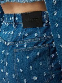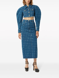 distressed denim skirt Highlights - Dark blue - Cotton - Denim - Distressed effect - Rear slit - Logo patch to the rear - Belt loops - Front button and zip fastening - High waist - Mid-calf length - Classic five pockets Imported Composition Cotton 100% SIZE & FIT Measurement HIPS 38.58 in(98 cm) LENGTH 37.4 in(95 cm) WAIST 30.7 in(78 cm) Washing instructions Read Manufacturer Guidelines