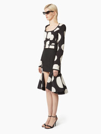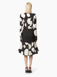A new addition to the Spring-Summer 2025 collection, this double-flounce skirt in a large polka-dot faille plays on length effects, subtly revealing the legs. COMPOSITION & DETAILS - 100% recycled polyester. - High waist. - Midi length. - Invisible zip closure at back. - Ruffled bottom. - Model is 181 cm and wears a size 36 (FR). - Ref : 25PCJU018PL0475I9071