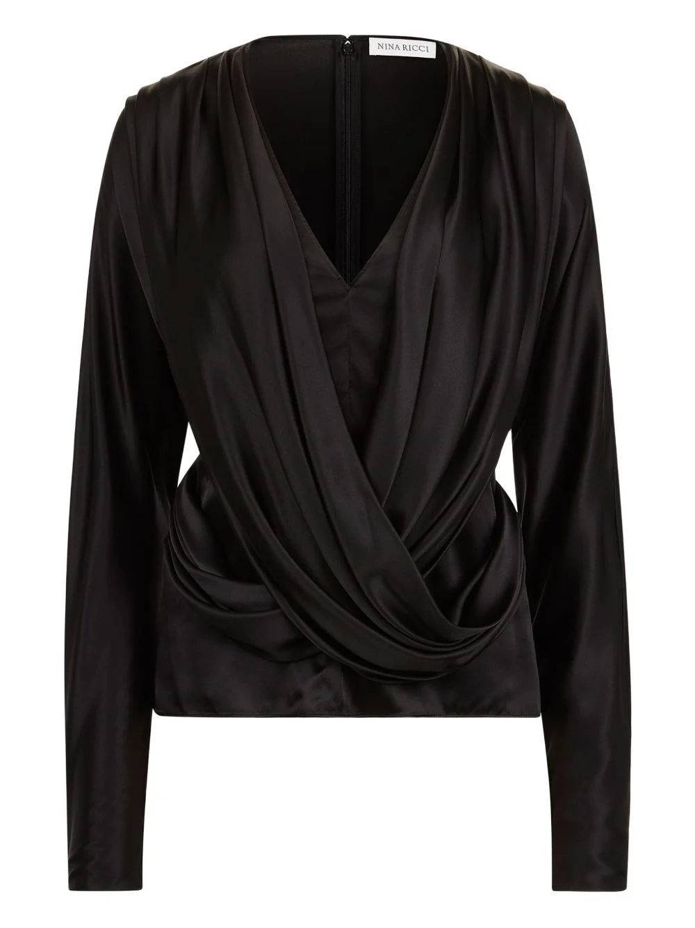 draped V-neck top Highlights - Black - V-neck - Draped design - Long sleeves - Wrap-effect front Imported Composition Viscose 52%, Silk 37%, Elastane 11% Washing instructions Read Manufacturer Guidelines