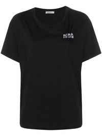embroidered-logo t-shirt black cotton embroidered logo at the chest gathered detailing round neck short sleeves straight hem Imported Composition Cotton 100% SIZE & FIT Model measurements Height 5 ft 9 in(1.75 m) Bust/Chest 31.88 in(81 cm) Hips 34.64 in(88 cm) Waist 22.83 in(58 cm) Washing instructions Machine Wash