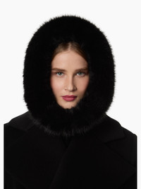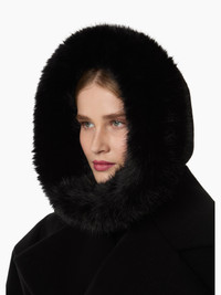 This ribbed wool and cashmere hood, trimmed with faux fur, introduces a new piece imagined by Harris Reed for Maison Nina Ricci. It combines warmth, comfort, and elegance, while adding a bold fashion twist. COMPOSITION & DETAILS - 90% wool, 10% cashmere. - Faux fur trim around the face. - One size fits all. - Ref: 25AMAC001ML0590U9000