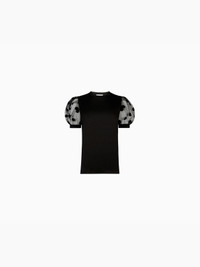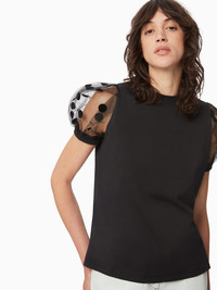 Designed in a soft, stretch cotton jersey, this t-shirt is enhanced by Nina Ricci's signature polka-dot tulle at the sleeves, for a bold signature look. This style fits true to size. Take your regular size. COMPOSITION & DETAILS - 100% cotton. - Straight fit. - Round collar. - Short, puffed sleeves in polka-dot tulle. - Model is 181 cm and wears a size S (FR). - Ref : 24AJTO028CO1074U9000