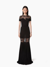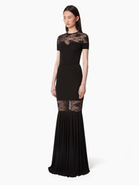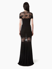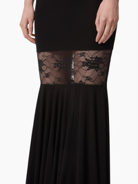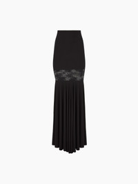 Emblematic of the Nina Ricci silhouette, the mermaid skirt embodies femininity and timeless elegance. For the Spring-Summer 2025 season, Harris Reed interprets it, blending the fluidity of jersey with openwork lace insert. COMPOSITION & DETAILS - 100% viscose. - Mermaid cut. - Unlined. - Transparent lace yoke. - Model is 182 cm and wears a size 36 (FR). - Ref : 25PJJU028VI0532U9000