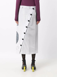 graphic-print midi skirt grey/black graphic print to the side logo print to the front mid-rise belt loops front and rear button detailing straight hem Imported Composition Fabric 100% SIZE & FIT Model measurements Height 5 ft 9 in(1.76 m) Bust/Chest 31.88 in(81 cm) Hips 35.43 in(90 cm) Waist 24.8 in(63 cm) Washing instructions Dry Clean Only