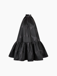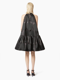 Crafted in lurex jacquard with polka dots, this American neckline dress features a bold flared cut for a resolutely sophisticated look. COMPOSITION & DETAILS - 65% recycled polyester, 35% polyester. - Wide cut. - Mid-thigh length. - Staple closure at collar. - Model is 181 cm and wears a size 36 (FR). - Ref : 25PCRO051PL0471U9000